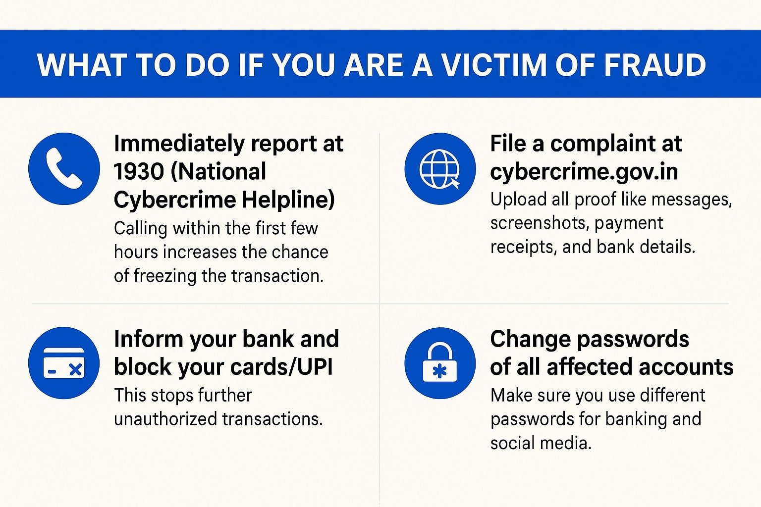 Online financial fraud doesn’t just cause monetary loss—it affects mental peace, trust, and confidence in digital platforms. With increasing digital payments, staying informed is the best way to stay protected.
